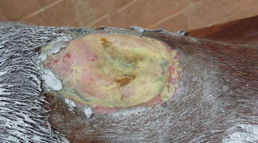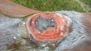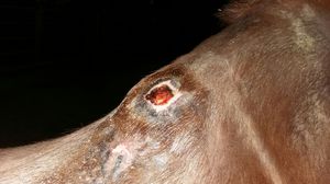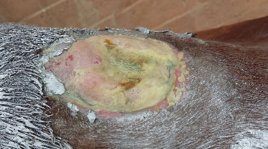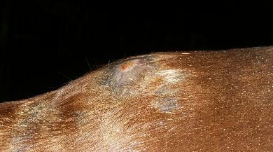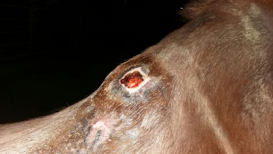 Offene Stelle am Widerrist durch Druckstelle.